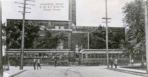The Toledo and Monroe Railway interurban street railroad powerhouse at the intersection of Elm Avenues and Monroe Street in Monroe, Michigan, in 1901.
