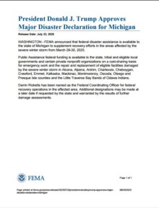 Home - News - Whitmer Appeals FEMA Denials – Who pays Michigan’s $300M ice storm bill? - FEMA-Trump