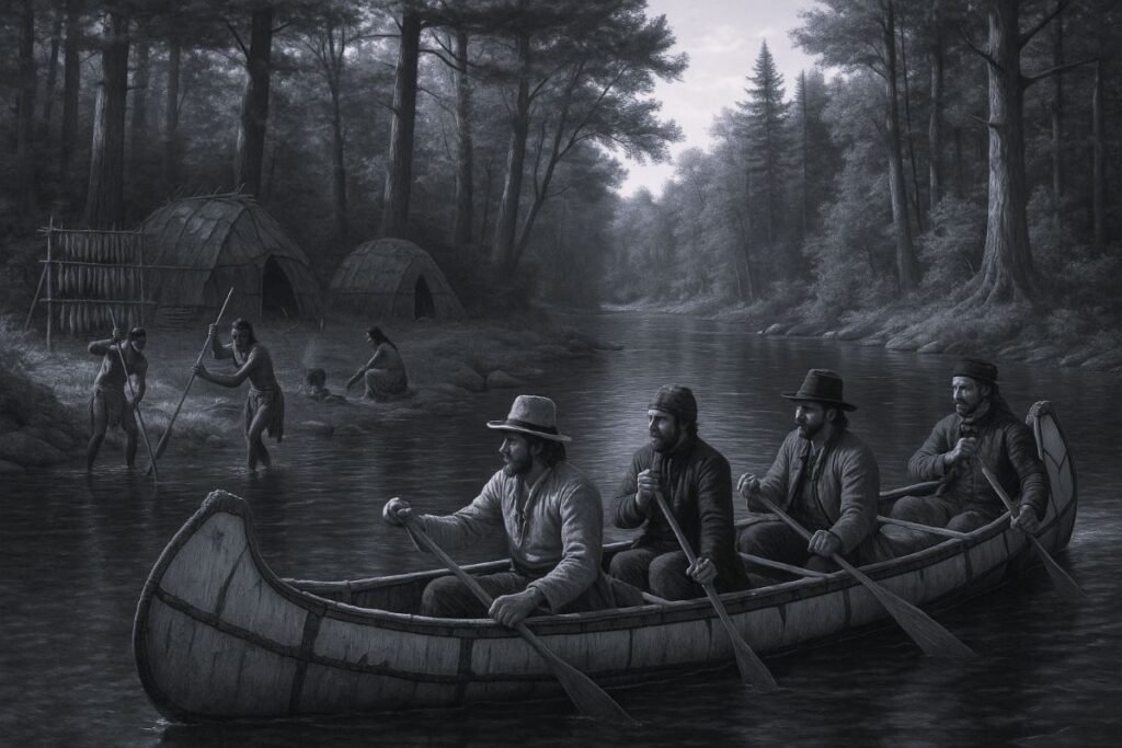 In the 1700s, French explorers and fur traders traveled this bay. They named the river “Au Grès,” meaning “gritty stone” in French, because of local sandstone along the river’s mouth. Through the 1700s and early 1800s, Michigan changed hands between European powers and the young United States, but Au Gres remained a quiet native place, mostly untouched by forest and marsh. The Anishinaabek here spoke their languages and followed seasonal rounds of hunting, fishing, and gathering, living in harmony with the lake.